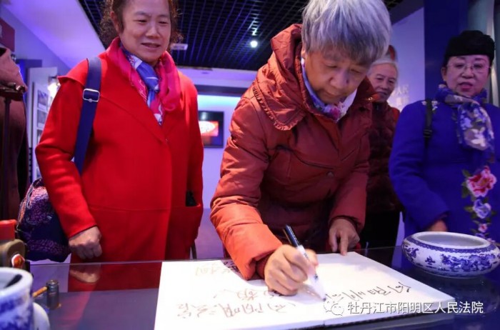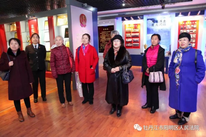 在文化建设长廊,大家参观了干警生活照片墙、书画作品展和法院丰富的业余生活照,不禁感叹阳明区法院人才济济。在院史展览馆,一张张旧照和一件件展物打开了阳明区法院的历史画卷,大家感受到了阳明区法院的沧桑巨变和贯穿始终、初心不变的法治理念。嘉宾们来到了第四审判庭,在这里,嘉宾们了解到了预防电信诈骗的法律常识,大家纷纷表示要增强防范意识,提高法律素养,学会保护自己,安享晚年生活。