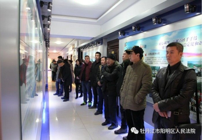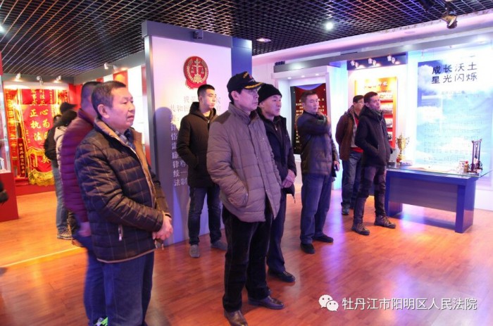 嘉宾们依次参观了尊严之厅、辉煌之窗、文化建设长廊和院史展览馆,感受阳明区法院的法治氛围,重温阳明区法院的沧桑历史。在尊严之厅,寓意着东西方文化的浮雕和“司法为民、公正司法”八个大字,让嘉宾们感受到了法官“海纳百川、兼收并蓄”的情怀。在辉煌之窗,嘉宾们初步领略了阳明区法院的卓越风采。在文化建设长廊,嘉宾们感叹于法院丰富多彩的业余文化生活和法院干警的多才多艺。嘉宾们来到院史展览馆,在这里重温阳明区法院的发展史,感受阳明区法院一以贯之的法治理念。