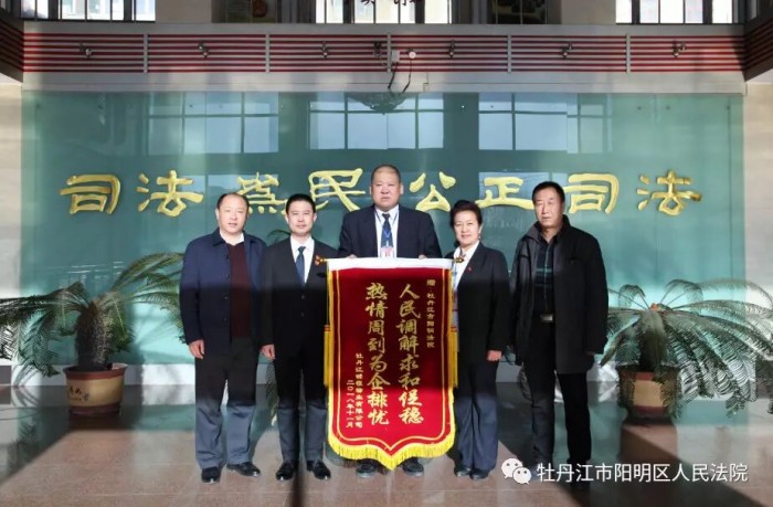 11月22日上午,牡丹江市锦程物业有限公司为立案庭庭长富淼、人民调解员高广明、张桂英送来了感谢锦旗,这是阳明区法院第一次收到送给人民调解员的锦旗,到底是怎么一回事呢,人民调解员发挥了怎样重要的职能呢?让我们一起来回顾一下……