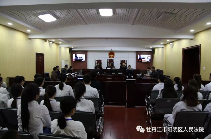 为在首个“宪法宣传周”开展好普法宣传工作,让法治理念在青年才俊中落地生花,12月5日,阳明区法院在牡丹江师范学院审判庭公开审理了一起医疗损害纠纷案件,审委会专委范晓丹担任审判长并主审本案,审监庭庭长吕彦君、员额法官崔思敏担任合议庭成员。来自牡丹江师范学院法学院和牡丹江医学院的近60名师生在庭审现场观摩,此次公开庭审在黑龙江法院网视频台全程直播。