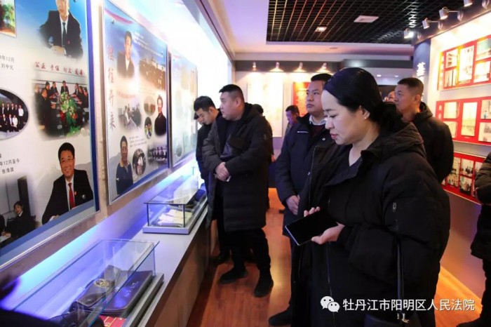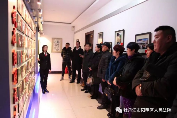 12月14日上午,来自牡丹江市国土资源局一行25人走进阳明区法院,参观文化建设,感受法治氛围。