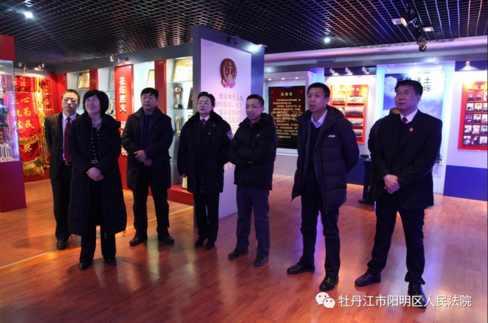 随后,在院党组的陪同下,孙区长一行参加了阳明区法院第70次“公众开放日”活动。嘉宾们依次参观了辉煌之窗、文化建设长廊及院史展览馆。