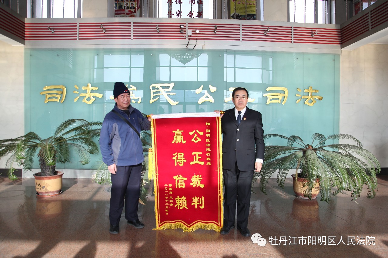 2月2日,还有一天就是除夕了,一大早,委托代理人孟某便来到阳明区法院,为行政庭庭长张广送来了一封来自83岁老人修某的感谢信和一面锦旗。