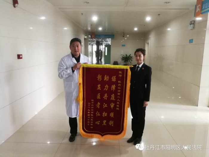 4月30日,阳明区法院党组成员、副院长张海波来到牡丹江市第二人民医院,送上了感谢锦旗和一封来自阳明区法院党组的感谢信。