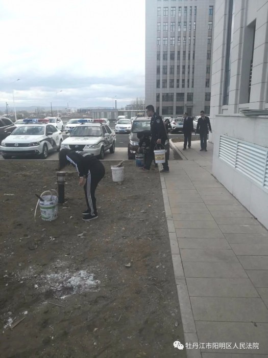 座谈结束后,全院干警在院党组的带领下,清扫新院周围卫生,齐心协力优化办公环境。