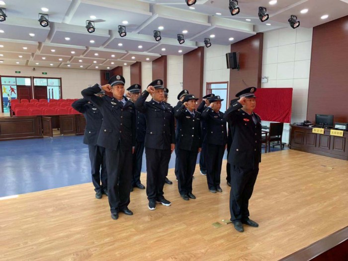 宣誓活动开始,全体司法警察身着警服、精神饱满、斗志昂扬,举起右手,庄严宣誓:“我宣誓:我志愿成为人民法院司法警察,献身于崇高的人民司法事业,坚决做到对党忠诚、服务人民、执法公正、纪律严明,矢志不渝做中国特色社会主义事业的建设者、捍卫者,为维护社会大局稳定、促进社会公平正义、保障人民安居乐业而努力奋斗!”