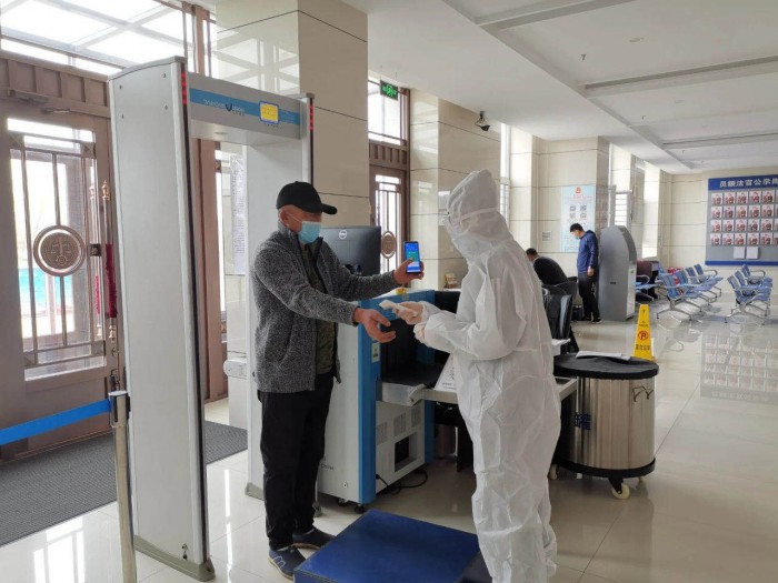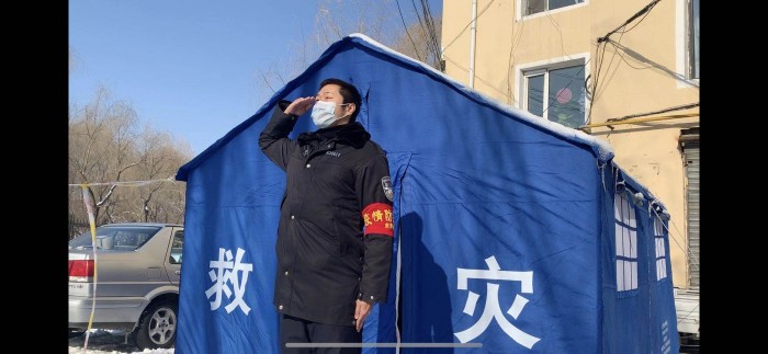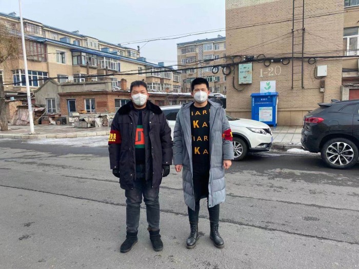 在疫情最初期,因为封城管控许多干警都无法返岗,身在牡丹江市的法警李鑫、郭子政、王俊业、张天俊第一时间肩负起全院的疫情防控重担,冒着风雪,坚持在每天早晨7点到岗工作,是我院疫情防控战役的先行军!法警王晓刚、徐嘉辉也都出色的完成了风险最高的隔离点执勤任务!面对危险,他们无所畏惧,曾为军人的徐嘉辉坚定地说:“疫情面前,我依然是一名战士!疫情越是严重,我越要冲在一线,保家卫国的初心永不变!”