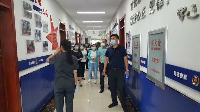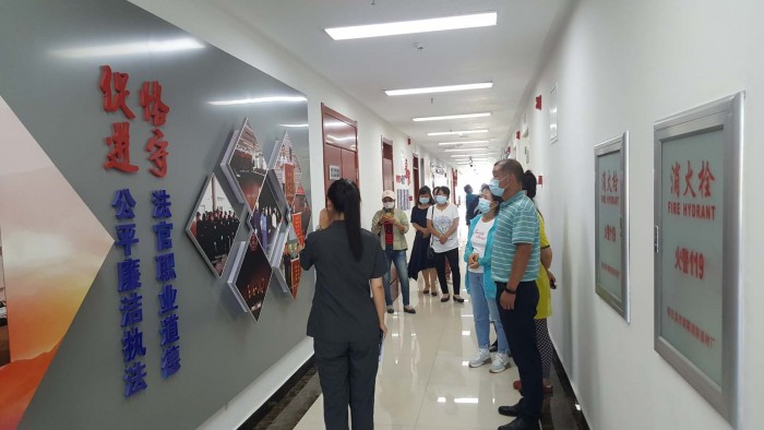 参观法院在法院讲解员的带领下,社区干部们先后参观了尊严之厅、法警大队、多功能审判庭、党建文化长廊、党支部活动室、诉讼服务中心、家事审判庭等场所,全方位、零距离了解了法院的立案流程、审判流程、为民服务和党建工作等情况,观看了扫黑除恶宣传片。在党支部活动室,魏凯书记详细了解了法院党建工作,与法院干警关于开展党建工作进行了经验分享。