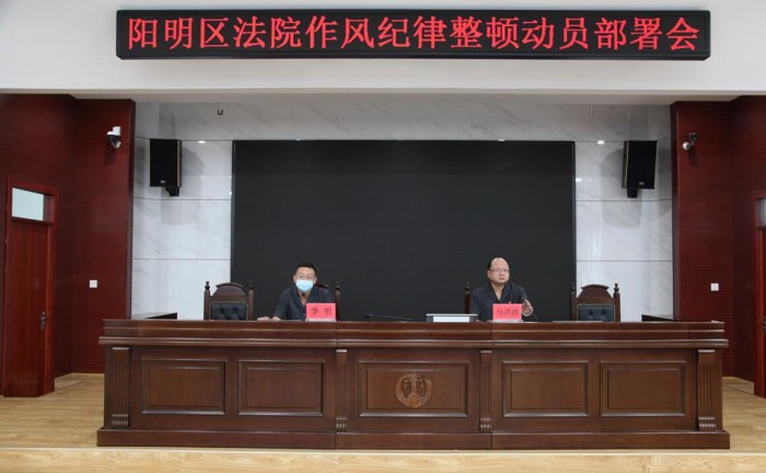 为进一步规范司法行为,转变思想作风,改进工作作风,9月2日下午,阳明区法院召开作风纪律整顿动员部署会,会议由党组副书记、副院长季明主持,党组书记、院长马洪波作重要讲话,全体干警参加。