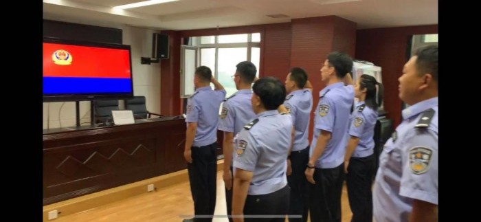 为进一步加强司法警察队伍建设,不断提高履职能力,强化责任担当。9月7日下午,阳明区法院司法警察大队组织全体司法警察集中观看“中国人民警察警旗授旗仪式”, 深入学习领会习近平总书记训词精神。阳明区法院党组成员,副院长马东晓到场一同观看。