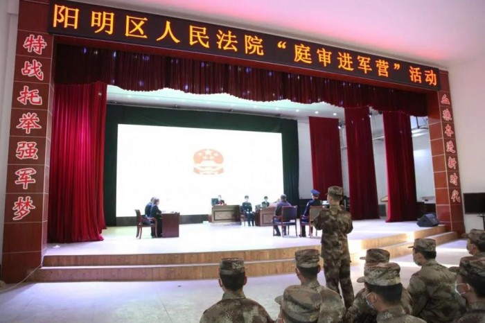 为进一步提升部队官兵法律意识,积极延伸审判职能,10月22日下午,阳明区法院应邀到达牡丹江市65379部队,开展庭审观摩活动。