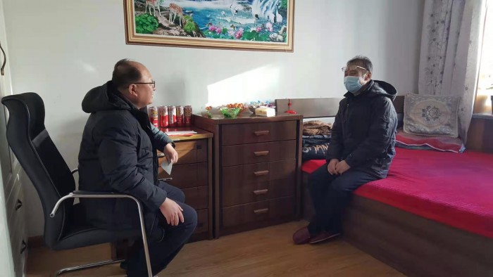 2月4日下午,在新春来临之际,阳明区法院党组书记、院长马洪波来到退休老干部赵永彬家中看望,为他送去了春节慰问品和院党组的关心与祝福。