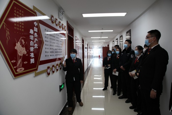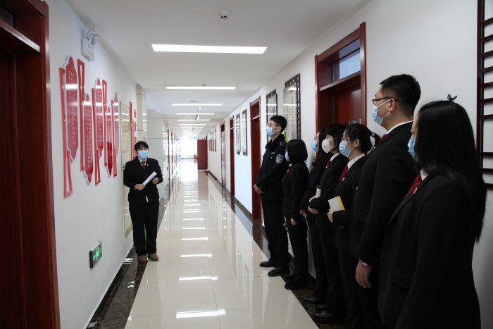 参观廉政文化长廊. 随后,廉政监察员参观了廉政文化长廊。参观中,讲解员为各部门新任职廉政监察员着重介绍了“三个规定”内容,并结合工作实际对司法人员与当事人、律师特殊关系人、中介组织接触交往行为的六项禁止行为进行深入讲解。
