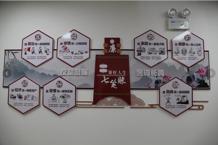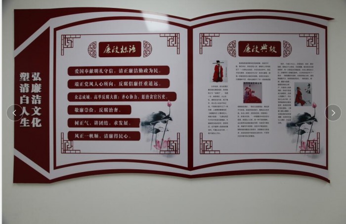 加强廉政文化建设。为了增强干警廉洁自律意识,营造风清气正的廉政氛围,阳明区法院在五楼设立了廉政文化长廊,打造了一个新的廉政文化教育平台。廉政文化长廊主要包括制度规定、廉政典故、警钟漫画、廉政语录四个版块,既有禁令纪律规定,又有廉洁的经典语录、讽刺漫画,内容图文并茂,集知识性、趣味性和政策性为一体,干警在接受廉政文化熏陶的同时,受到启迪和警示。