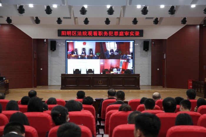 【教育整顿】强化警示教育——阳明区法院组织观看职务犯罪案庭审录像