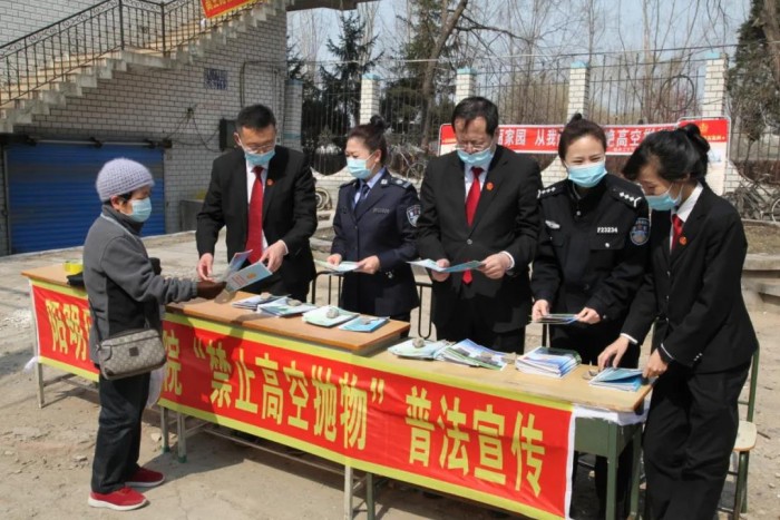 为了进一步提高居民的法律法规和安全意识,杜绝高空抛物陋习、维护“居民头顶上的安全”,4月12日上午,阳明区人民法院党组书记、院长马洪波、党组副书记、副院长季明带队深入阳明街道公园社区开展为期1周的以“禁止高空抛物”为主题的法律宣传活动,针对最新的高空抛物相关法律法规进行讲解宣传。