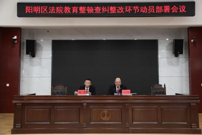 4月13日,阳明区法院召开队伍教育整顿查纠整改环节动员部署会。会议由党组副书记、副院长季明主持,党组书记、院长马洪波作讲话,全体干警参加会议。