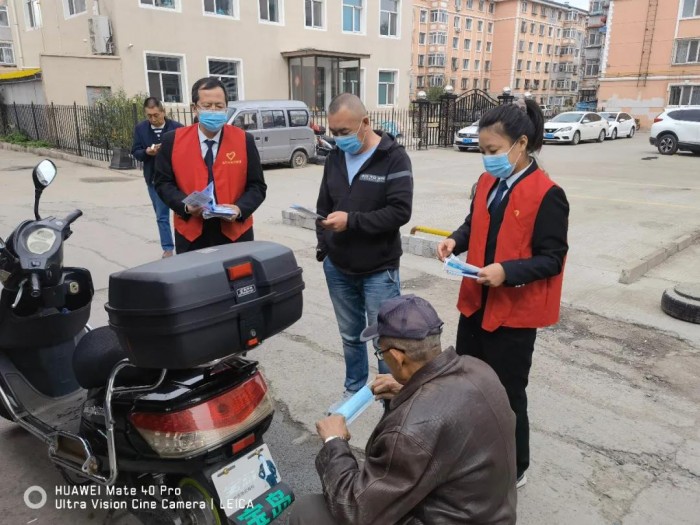 在光华社区,向社区居民发放酒精、口罩等防疫物资,发放电信网络诈骗宣传手册、预防网络诈骗的知识手册、阳明区人民法院扫黑除恶明白卡,累计发放防疫物资30份,法律宣传手册300份。