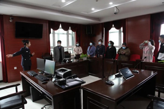 在讲解员的引领下,嘉宾们先后参观了尊严之厅、多功能审判庭、党建文化长廊、家事审判庭和诉讼服务中心等场所。 来到诉讼服务中心,嘉宾们深入地了解了立案流程、“一站式服务”等相关便民举措。