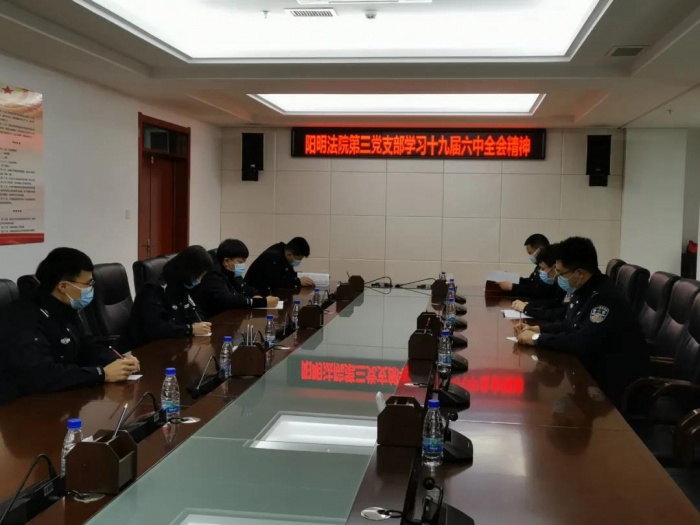 以四个党支部为单位,学习党的十九届六中全会公报和陈一新在中央政法委秘书长会议上的讲话精神,支部党员进行集中学习讨论,党员们纷纷表示要坚定理想信念,牢记初心使命,不为任何风险所惧,不为任何干扰所惑,埋头苦干、勇毅前行。