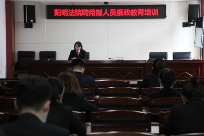 为提升聘用制人员廉洁自律意识,加强对聘用制人员管理,进而增强法院党风廉政建设和能力作风建设,5月19日上午,阳明区法院组织全体聘用制人员开展廉政教育专题培训。