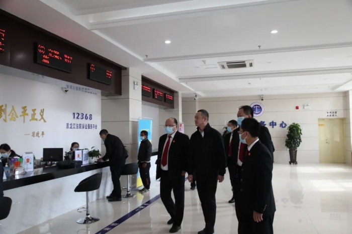 张经纬局长一行实地走访了诉讼服务中心、信访大厅、审判庭等地,了解相关工作推进情况,及时发现问题解决问题。