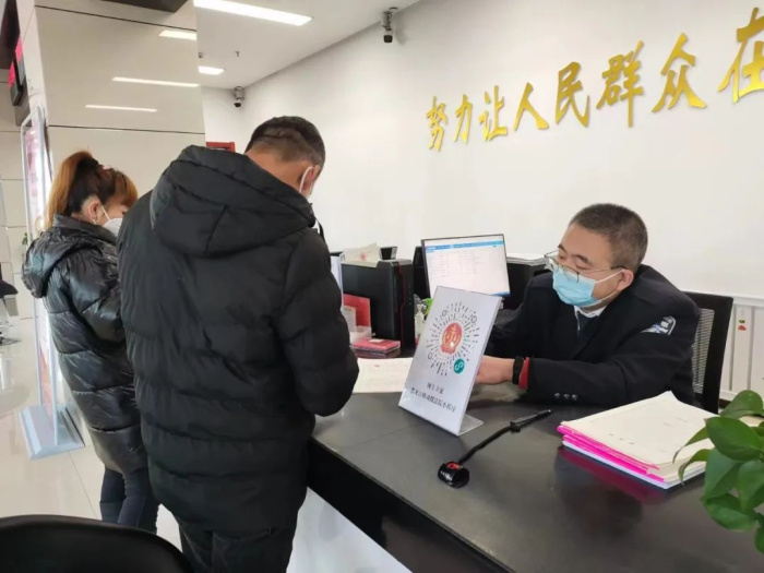 诉讼服务中心安检岗对来访群众进行安检,立案服务窗口干警为群众办理立案、接收当事人案件材料、耐心解答群众咨询立案。