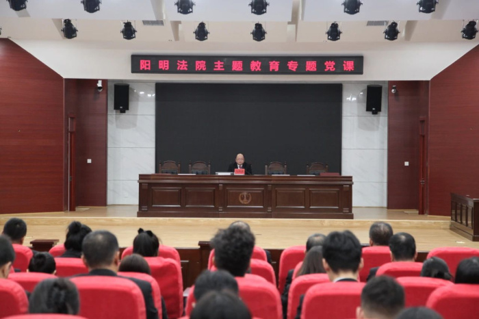 为扎实推进学习贯彻习近平新时代中国特色社会主义思想主题教育,筑牢法院队伍政治忠诚之基,助推审判执行等各项工作高质量发展,10月27日下午,我院党组书记、院长马洪波以《学深悟透习近平新时代中国特色社会主义思想 推进法院工作高质量发展》为题,为全院干警讲授专题党课。