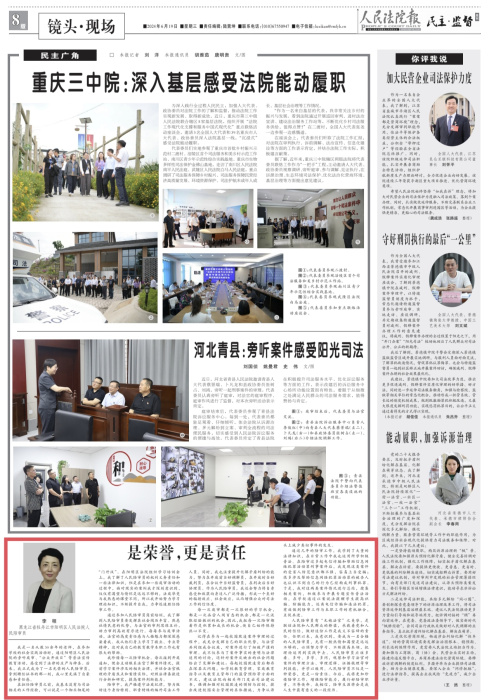 近日,《人民法院报》以“是荣誉,更是责任”为题,报道牡丹江市阳明区人民法院人民陪审员李程工作心得。