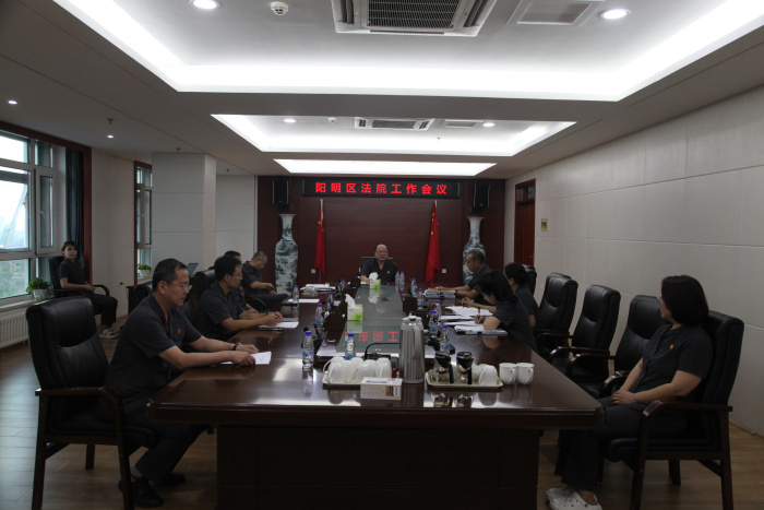 8月15日下午,阳明区法院召开工作会议,传达学习党的二十届三中全会精神、全国大法官研讨班精神,全省中级法院院长座谈会精神及全市基层法院院长座谈会精神,研究具体落实意见。阳明区法院党组书记、院长马洪波主持会议并讲话。