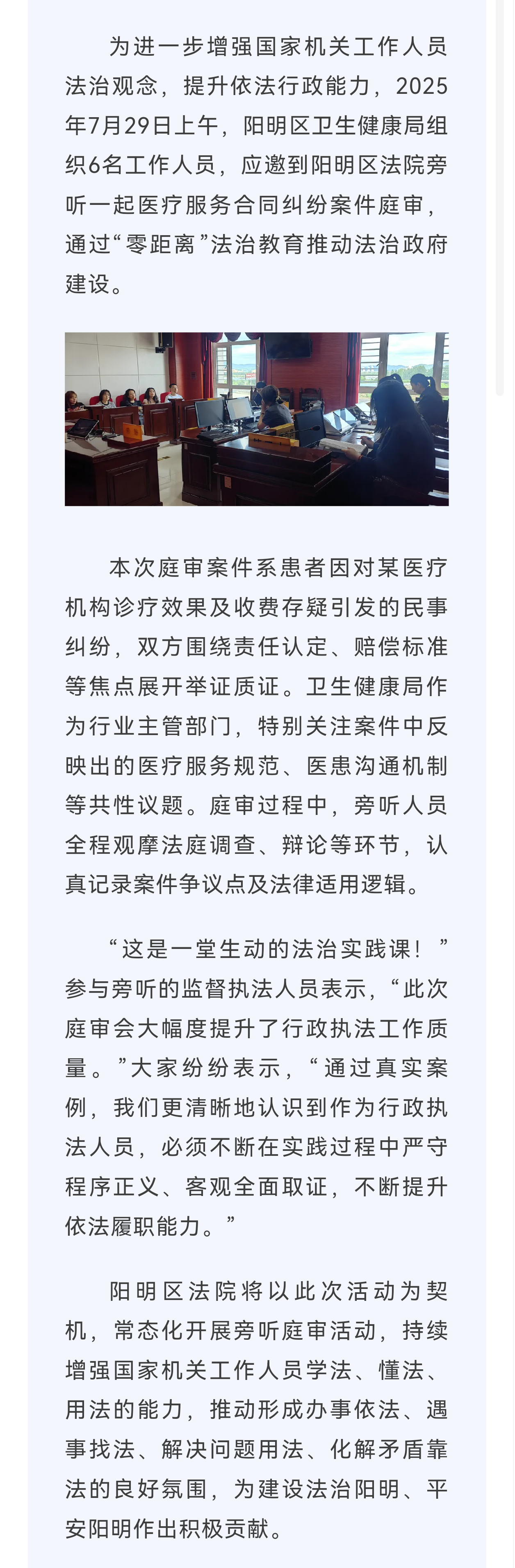 以案释法 以观促学--阳明区卫生健康局参加旁听庭审 以案为鉴强化法治意识