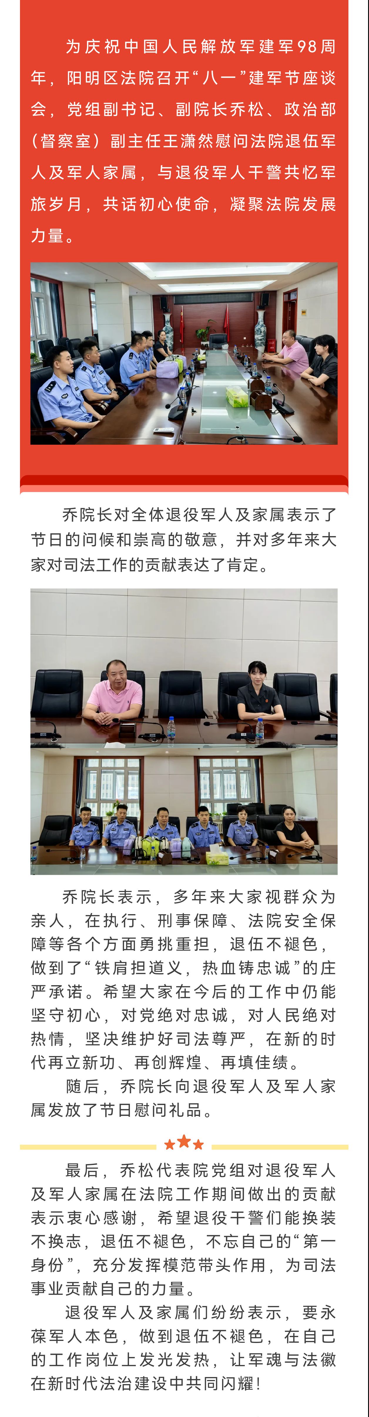 铁肩担道义 热血铸忠诚——阳明区法院召开“八一”建军节座谈会