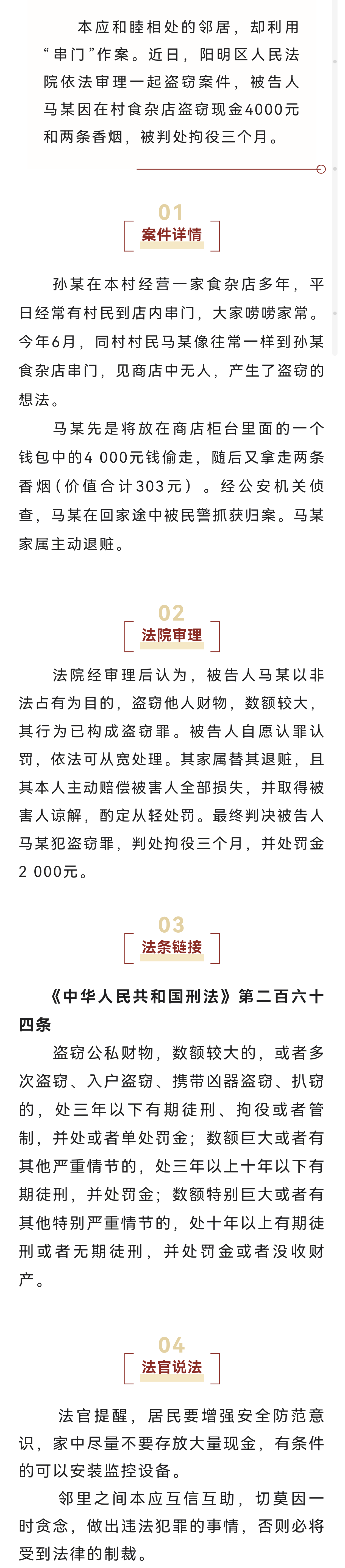 【以案释法】邻居来串门 ,顺便盗个窃,被判拘役三个月!