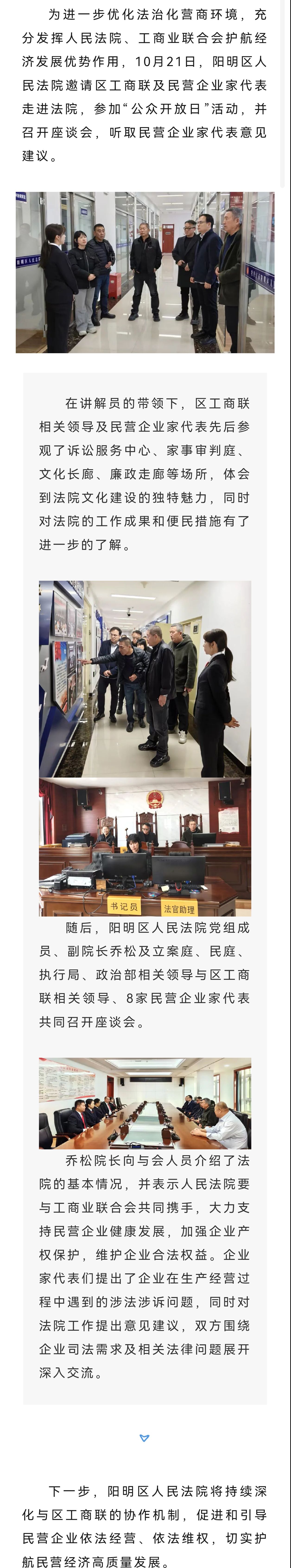 【第250次公众开放日】阳明区人民法院召开区工商联及民营企业家代表座谈会 护航民营经济高质量发展