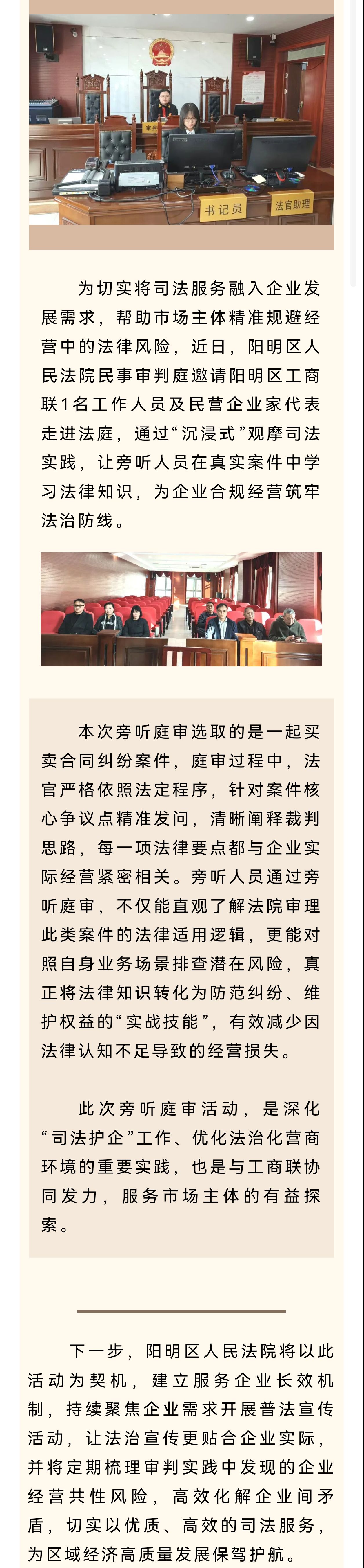 阳明区工商联及民营企业家代表零距离参加旁听庭审 筑牢经营法治防线