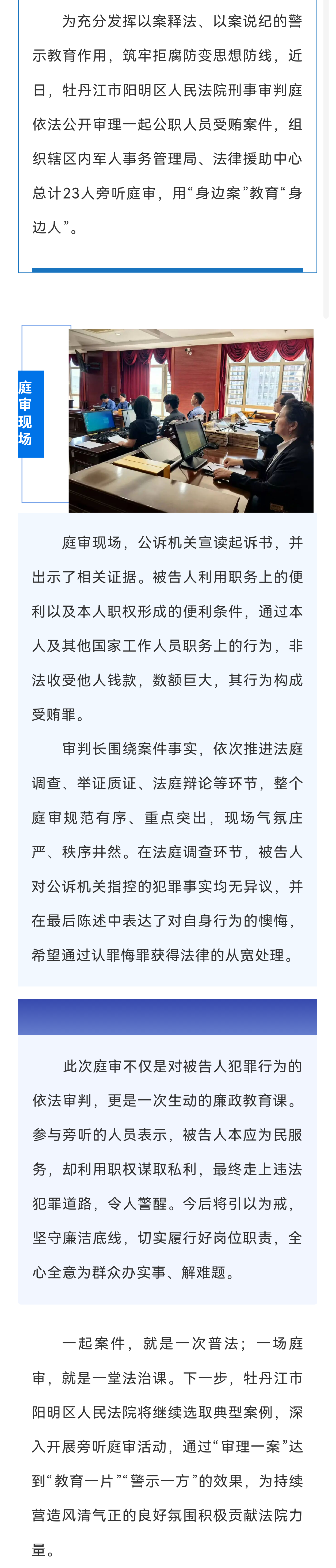 “零距离”廉政警示——阳明区人民法院开展受贿案件旁听庭审活动