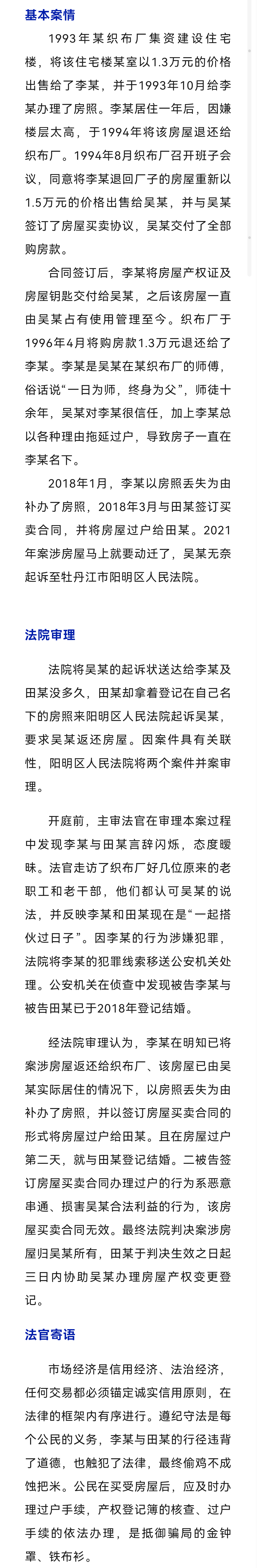 【以案释法】房屋被他人偷卖怎么办?法院审理心系群众