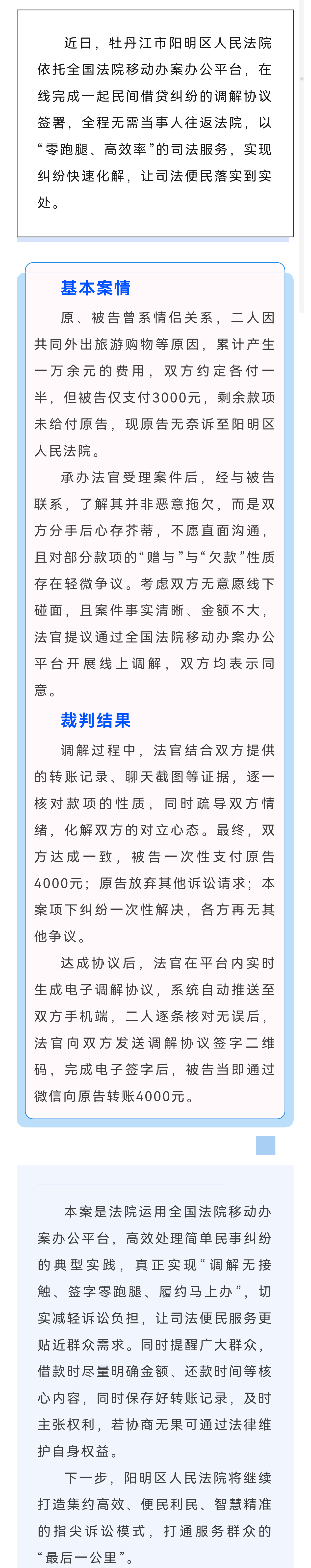 阳明区人民法院运用全国法院移动办案平台 高效化解民间借贷纠纷