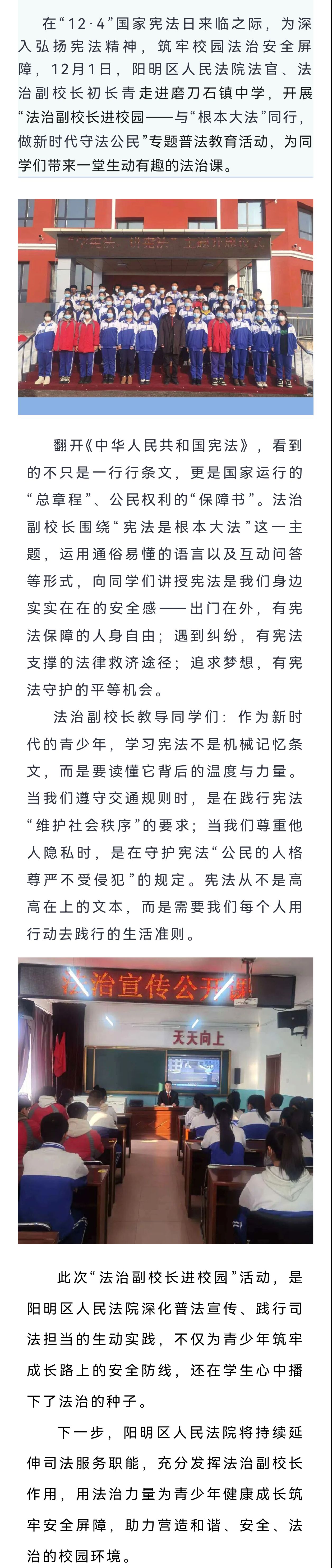 【宪法宣传周】法治守成长 安全护童心——阳明区人民法院开展法治副校长进校园暨宪法宣传活动
