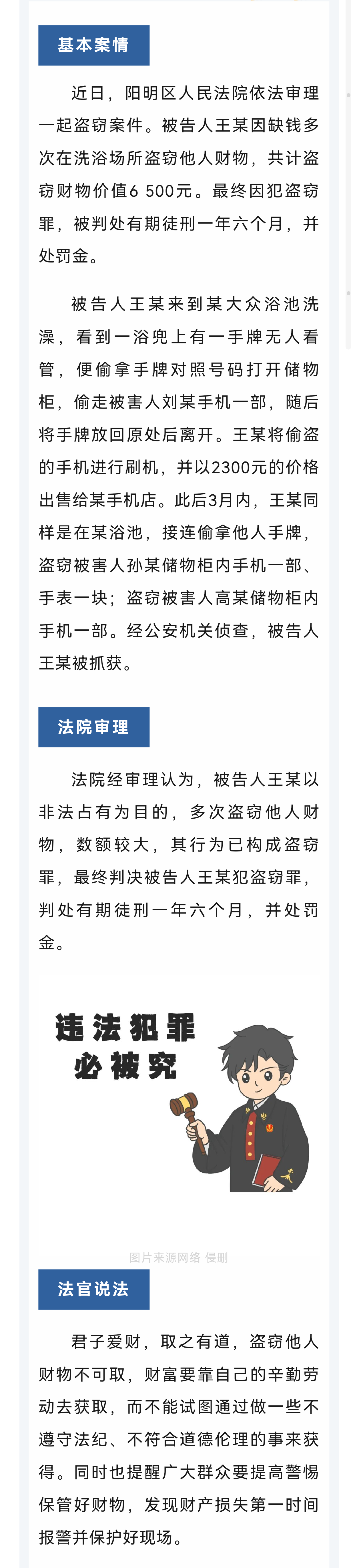 【以案释法】洗浴场所行盗窃 不劳而获落法网