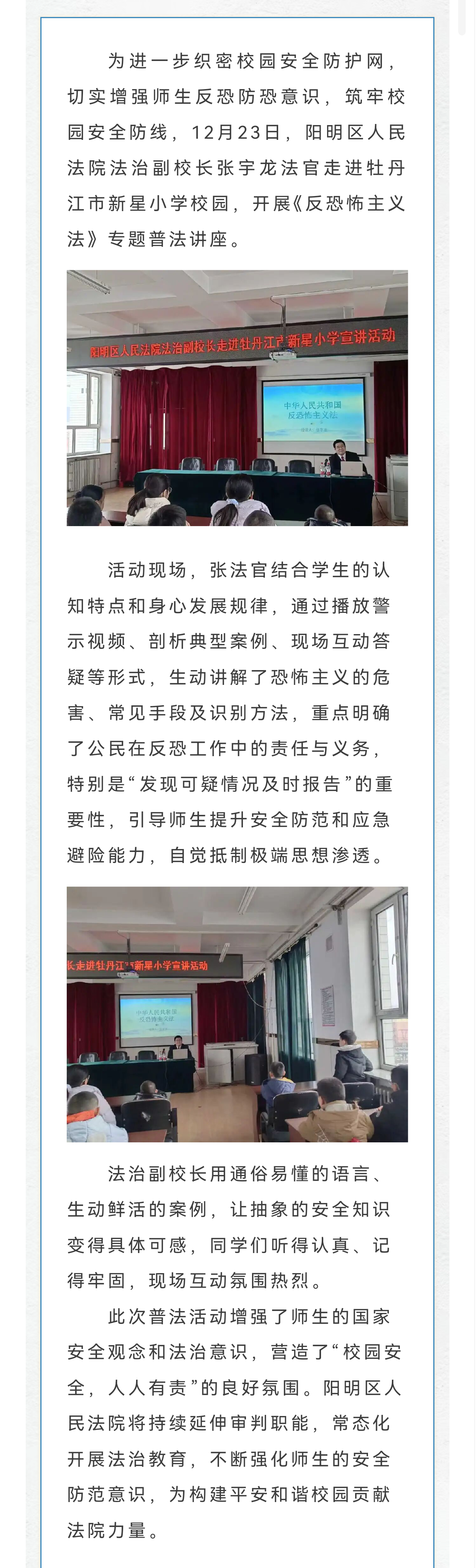 反恐宣传进校园 筑牢平安防护网——阳明区人民法院法治副校长走进校园开展反恐普法授课