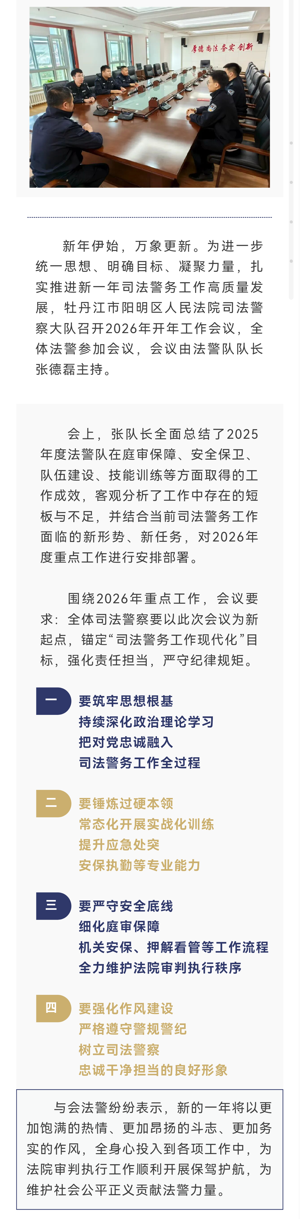 凝心聚力启新程 砥砺奋进护公正——牡丹江市阳明区人民法院法警队召开新年开年工作会议