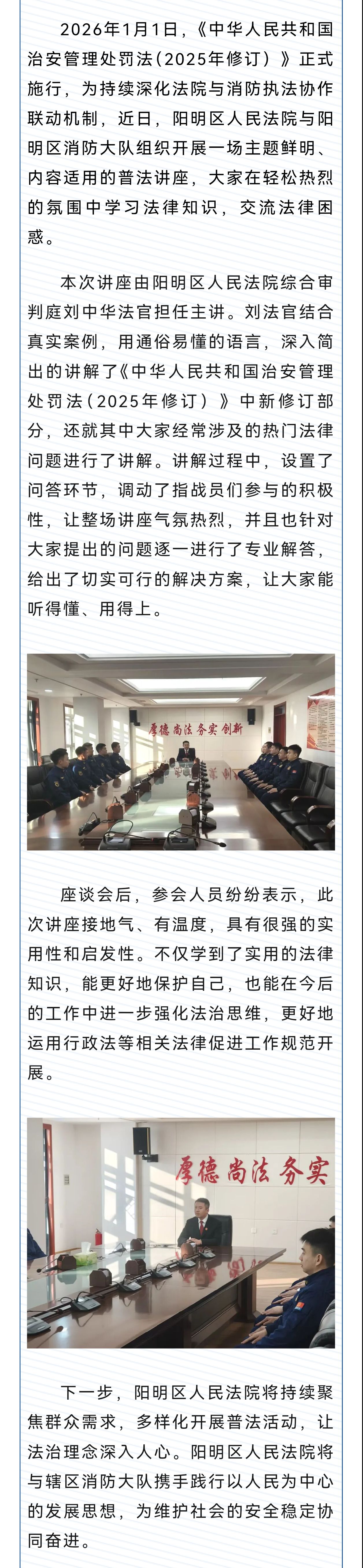 法润人心 共建平安——阳明区人民法院普法讲座圆满举行