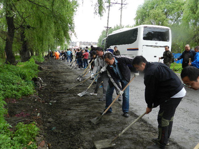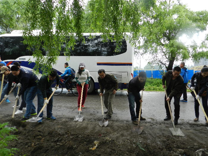 阳明区法院干警参加阳明区政府组织的卫生清扫行动冒雨清理建筑垃圾