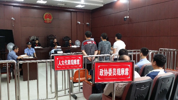 2015年7月8日, 9名人大代表、政协委员及阳明法院审判委员会成员7人共同旁听了一件张某等三人涉嫌开设赌场罪的刑事案件,在庭审过程中,主审法官通过规范化引导,使公诉人、嫌疑人及其辩护人充分发表了诉辩意见,又通过举证、质证、认证等环节的有序进行,使整个庭审活动重点突出、焦点明确、规范有序。评查人员按照庭审质量标准要求,严格评查,从法庭形象、庭前准备、庭审程序、庭审能力等四个方面,按照案件庭审评查的34项得分点, 现场打分。