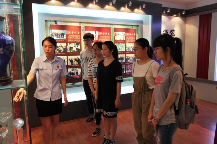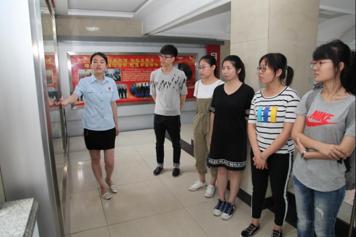 随后,政工科科长郭玉荣陪同法学院学生共同参观了我院忠诚广场、尊严之厅、辉煌之窗、文化建设长廊及院史馆,在我院干警解瑞羽的全程悉心讲解下,同学们对我院历史及建设有了更加深刻的了解,对庄严的法院也多了一分向往。