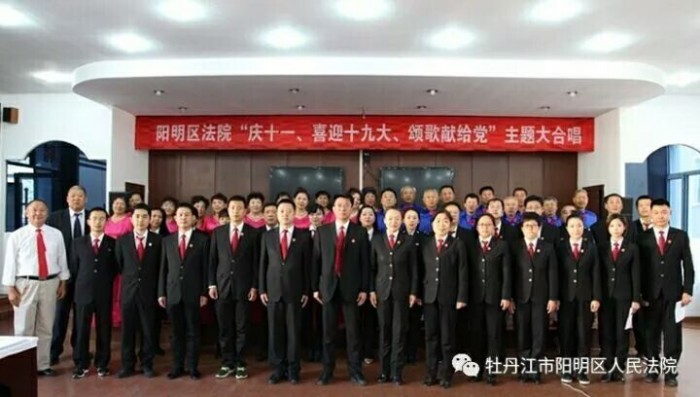 秋风送爽,万里河山披锦绣,丹桂飘香,各族人民庆辉煌。为弘扬爱国主义精神,迎接党的十九大胜利召开,9月29日下午,阳明区法院开展“庆十一、喜迎十九大、颂歌献给党”主题大合唱活动。