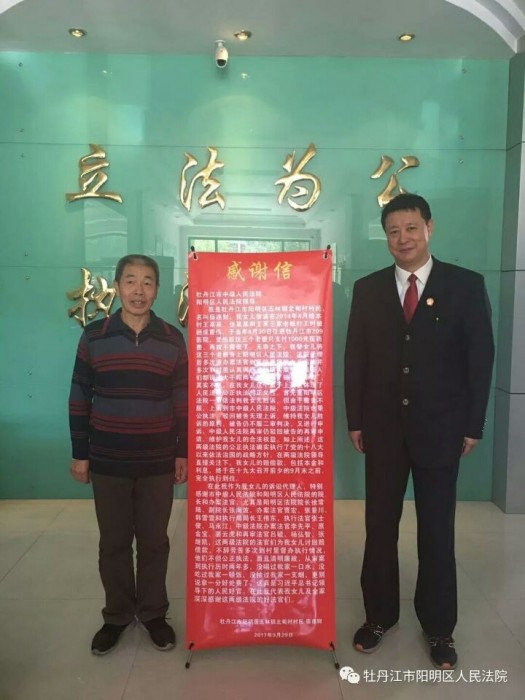 近日,当事人宿某亲自来到阳明区人民法院,郑重地向我院执行法官送上了一封来自人民的感谢信。