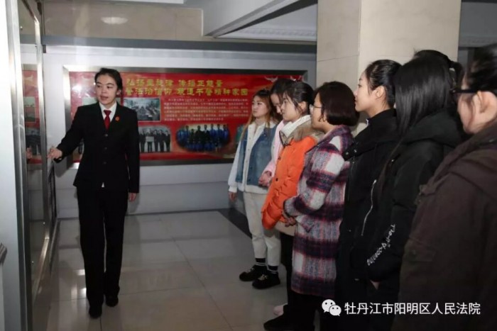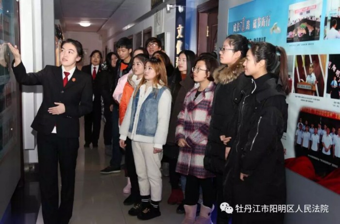 自牡丹江师范学院法学院的实践教育基地在我院落成后,11月28日下午,又一批牡师院法学院学生来到阳明区法院参观法院文化建设。