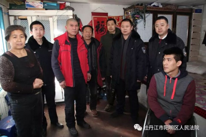现年24岁的梁晨在工作时被吊车砸伤,造成腰肢以下瘫痪,丧失劳动能力。因为需要照顾儿子,梁晨的父母无法外出务工,只能依靠在家做煎饼勉强度日,因被执行人名下无财产且无执行能力,梁晨始终无法得到赔偿金,高昂的医疗费用让这个原本就不富裕的家庭雪上加霜,一家人借遍了亲朋好友,也背负了几十万元的外债。我院执行警务局局长王伟东了解到梁晨家中的困难情况时,第一时间向院领导汇报了此事,我院党组高度重视困难当事人的生活状态,为梁晨申请了最高额度的司法救助金,为了在春节前能让梁晨一家人感受到司法救助的温暖与关怀,我院开辟“快车道”,加快工作流程,最终为梁晨争取到了司法救助金9万元整。拿到这笔救助金,梁晨父母感谢的声音哽咽了,梁父说道,虽然不好的事情发生在了他们家中,但阳明区法院的公正判决让他们在艰难中得到一丝安慰,“法院的同志为了我们家的事情忙前忙后,我们怎么感谢都不为过啊,孩子也终于能换副好用的轮椅了。” 远景村村支书孙庆山说道,阳明区法院的扶贫包村就是远景村,法院对远景村帮助很多、奉献很多,因为阳明区法院对梁晨案件的重视,阳明区政府也知道了他们的事情,梁晨一家被划为重点帮扶对象,村委会和村里的乡亲也纷纷贡献自己的力量,远景村会继续协助法院帮助梁晨一家人早日摆脱困境。